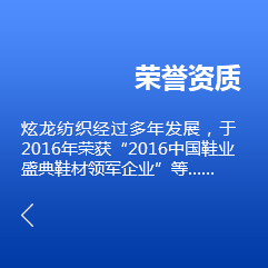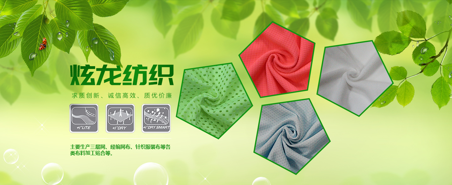 泉州市炫龍紡織科技有限公司位于中國福建晉江--中國鞋都,是一家集研發(fā)、生產、銷售為一體的紡織企業公司。主要生產:三層網、經編網布、針織服裝布、休閑時尚女裝網布、鞋用各類BK布、拉毛布、大小提花布、賈卡提花、3D飛織、各類布料加工貼合等。 公司秉承“求質創(chuàng)新、誠信高效、質優(yōu)價廉”的經營理念為宗旨,竭誠為廣大海內外客戶求創(chuàng)一流的服務及優(yōu)質的品質,歡迎海內外的客戶供樣、定制及洽談合作。